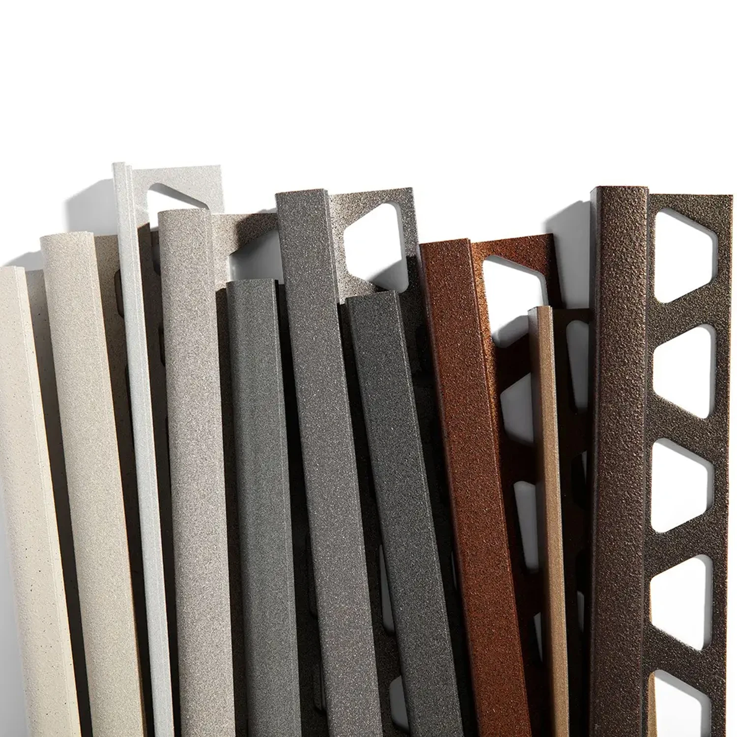Tile trims are commonly installed at external corners, edges, steps, and transitions. They are available in various materials such as aluminum, stainless steel, PVC, and brass, and in multiple shapes, finishes, and colors to complement different tile designs. Tile trim ensures a neat, professional finish while improving safety and longevity of the tile installation.